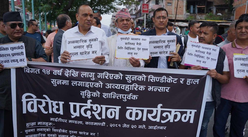 सुनको कोटा र भंसार महशुल विरुद्ध काठमाडौंमा व्यवसायीको प्रर्दशन