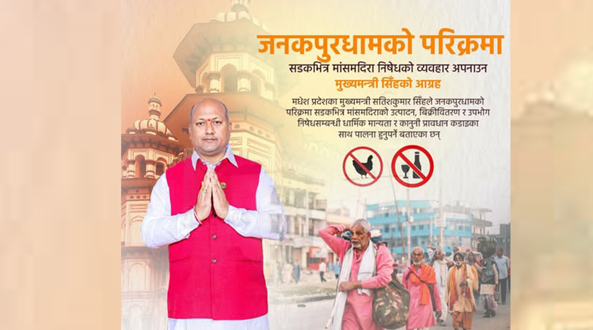 जनकपुरधामको परिक्रमा सडकभित्र मासु र मदिरा बेच्नेलाई कारबाही गर्ने चेतावनी