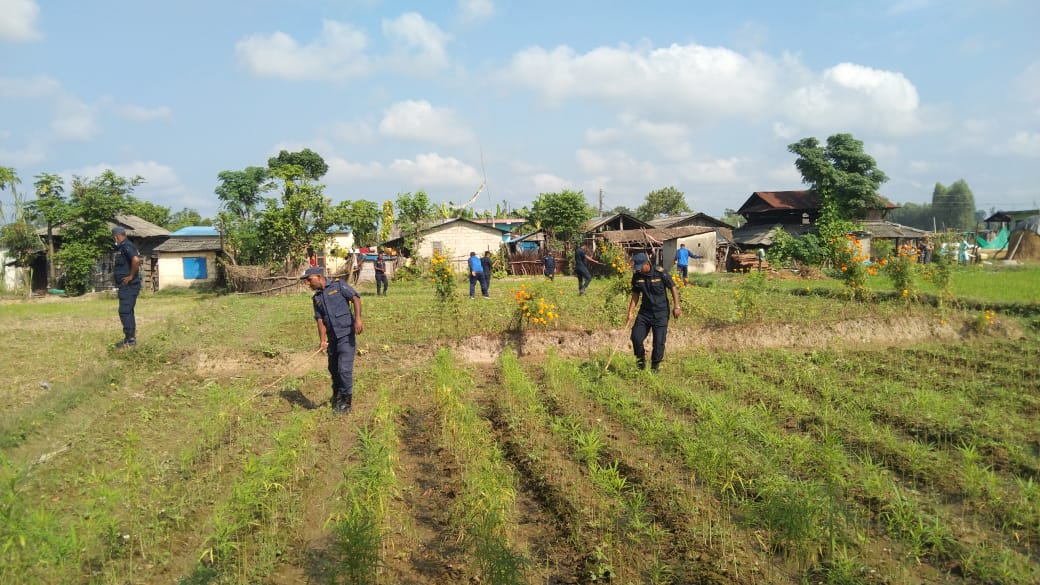 पर्सा प्रहरीद्वारा २ विघा गाँजा फडाँनी गरी नष्ट
