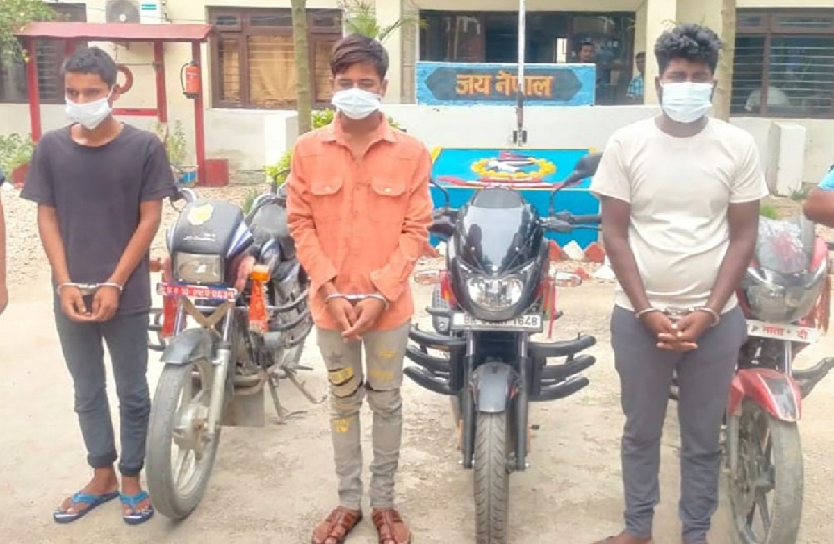 चोरीको ५ वटा मोटरसाईकल सहित पर्साबाट ३ जना पक्राउ