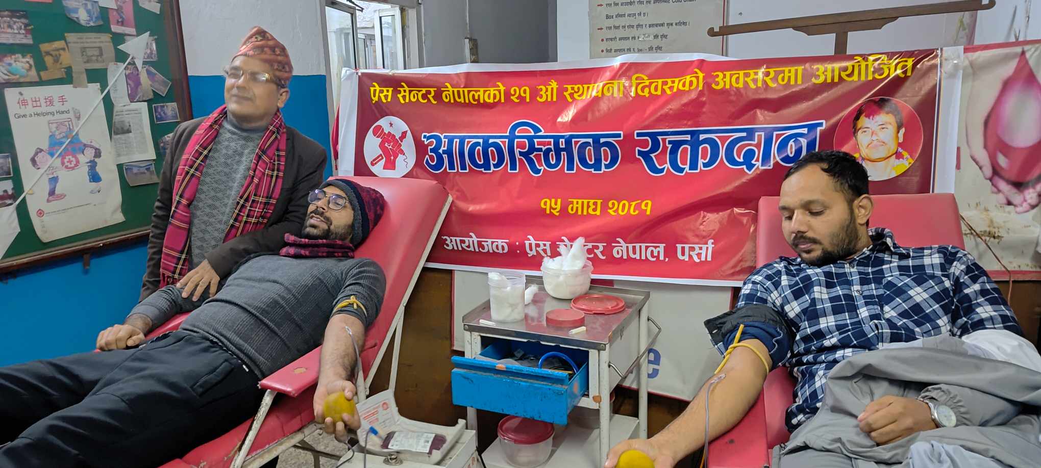 रक्तदान र प्रभाफेरी गरी प्रेस सेन्टर नेपाल पर्साले मनायो २१ औं स्थापना दिवस