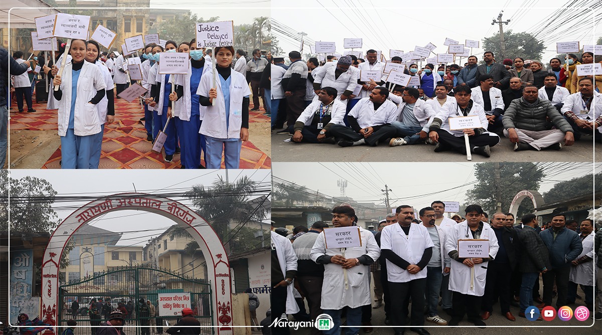 अस्पताल भवन नबनेपछि उपचार छोडेर चिकित्सकहरु सडकमा धर्ना दिन बाध्य