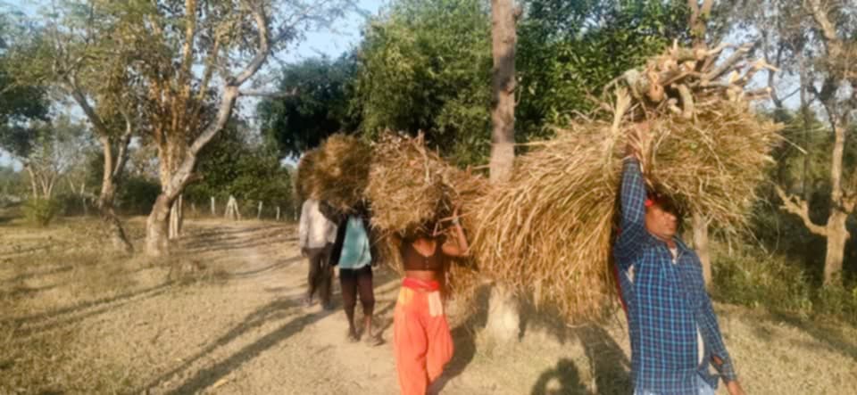 जिराभवानी गाउपालिकाका अति बिपन्न परिवार,खर काटेर गुजारा गर्दै