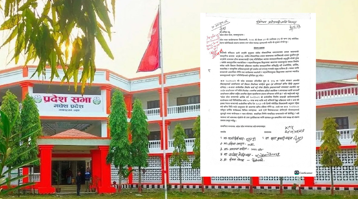 बजेट संसोधनका लागि मधेस प्रदेशसभामा ६ जना सांसदहरुले दर्ता गराए संकल्प प्रस्ताव