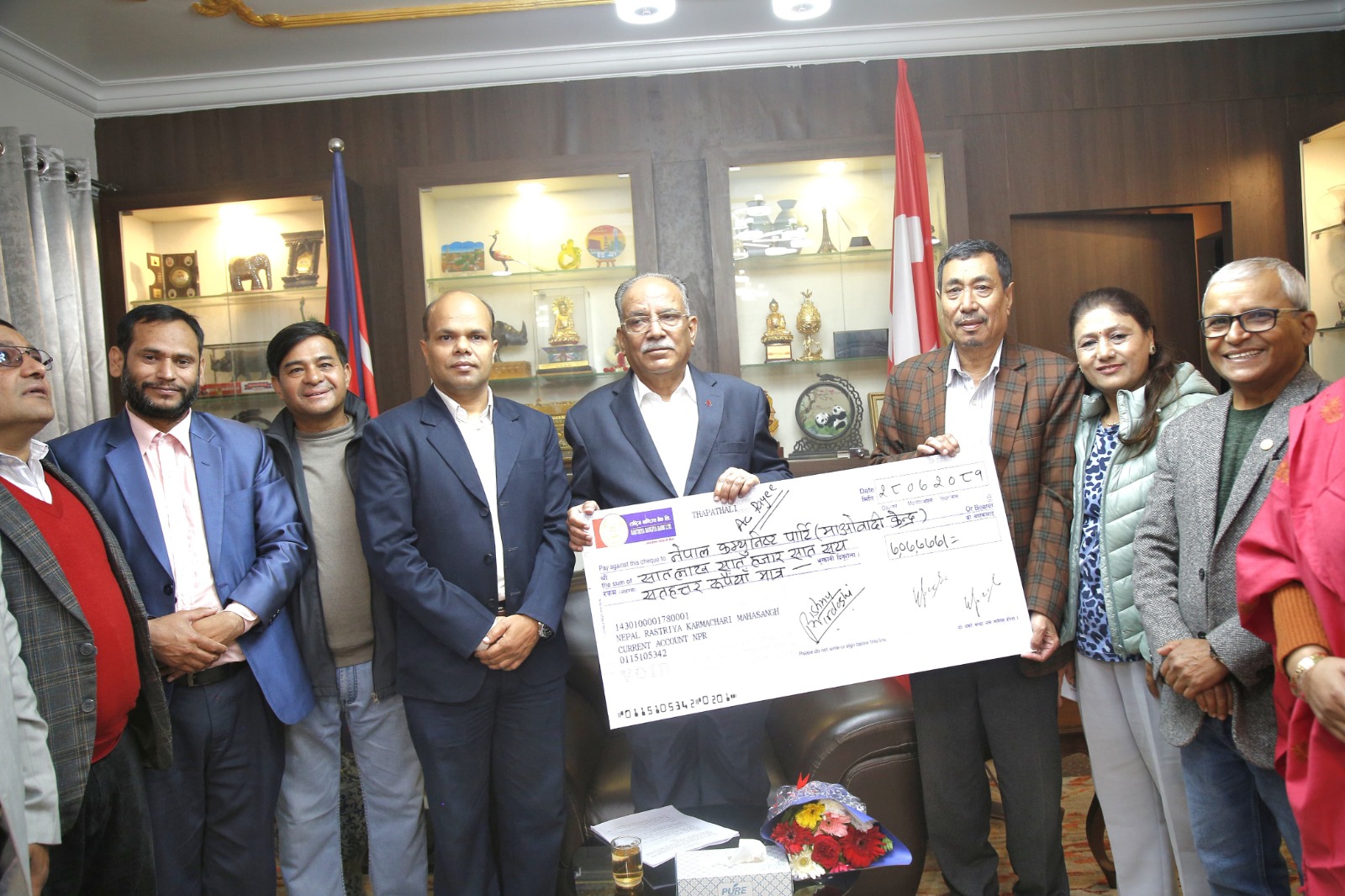 कर्मचारी महासंघद्वारा बाढीपहिरो पीडितका लागि पौने आठ लाख सहयोग
