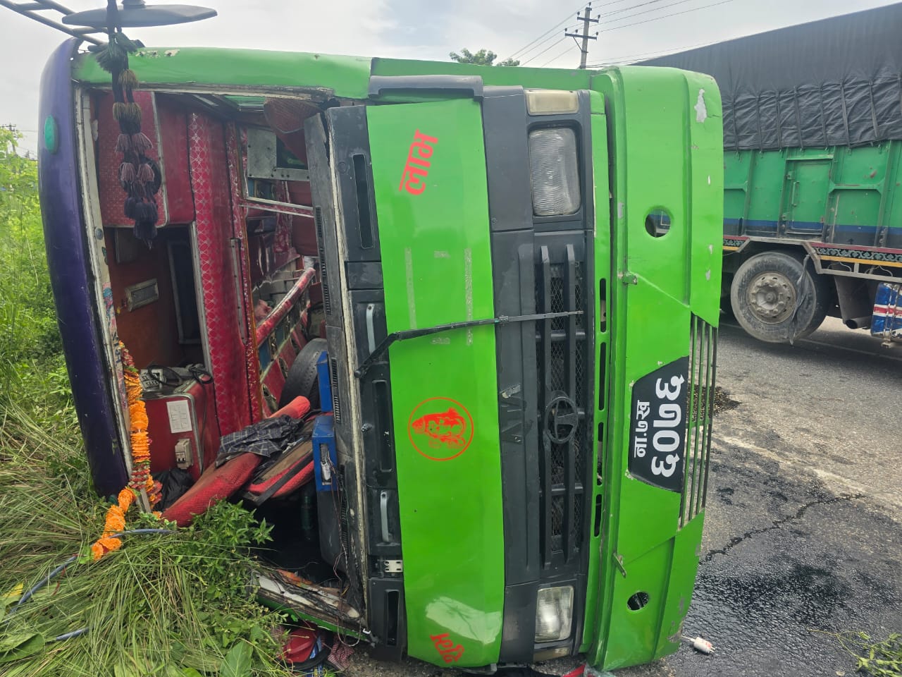 वीरगञ्ज पथलैया सडक खण्डको हिमाल आयरन चोकमा बस दुर्घटना